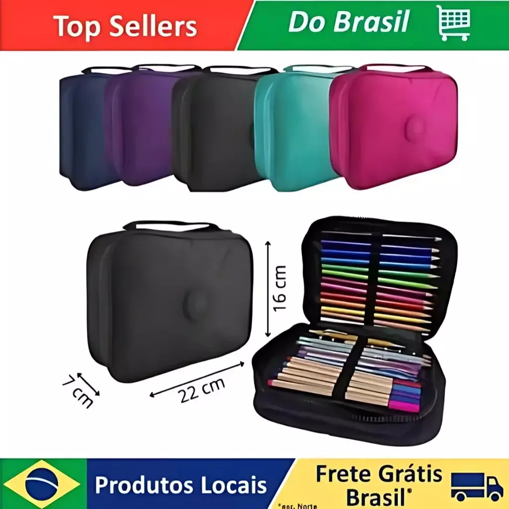 Estojo grande e bem dividido, com capacidade para diversos itens, disponível em núcleos variados.Seu design é compacto com alta funcionalidade e uma bela estética.